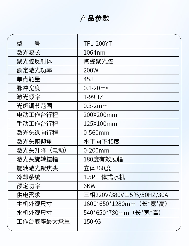 通發(fā)激光一體式模具激光焊機(jī)TFL-200YT/TFL-400YT是一款多種功能融合一體的新型模具激光焊接機(jī),針對(duì)特大型塑料模具激光焊、中型注塑模具激光燒焊、小型塑膠模具激光補(bǔ)焊、壓鑄模激光補(bǔ)焊具等各類模具可實(shí)現(xiàn)超精密修復(fù),幫您解決大型汽車模具修復(fù)難題,不需要模具移動(dòng),電動(dòng)工作臺(tái)與立體旋轉(zhuǎn)激光頭完美結(jié)合,操作桿控制運(yùn)動(dòng)移動(dòng)實(shí)現(xiàn)輕松激光修復(fù)大型模具,同時(shí)也保留了傳統(tǒng)手動(dòng)工作臺(tái)超精密修復(fù)模具功能。