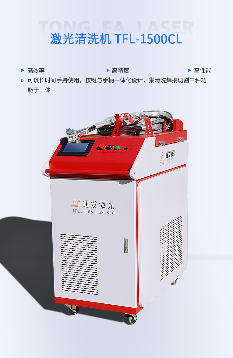 通發TFL-1500CL多功能激光清洗機,集激光清洗焊接切割三種功能于一體,功能強大,性價比超高。